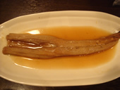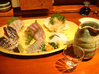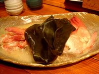 | 本日のメイン魚は、「きんき」。 道産子の私には、とても懐かしいお魚で、母の大好物1つ。高級魚なので、しょっちゅうではないものの、きんきが美味しくなる秋から冬の間、美味しいきんきが安く手に入ると、よく濃い目の醤油味で煮付けてくれました。 今夜は、とぶさかなの店主さんが、「先日、小樽でこうやって煮付けたキンキを食べて、すごく美味しかったんで、作り方教えてもらったんです」と“水煮”で調理してくれました。 キンキの濃厚な脂と、さっぱりした塩味。これもなかなかウマイ☆ …でもやっぱり最後は、お醤油かけちゃうね^^; |