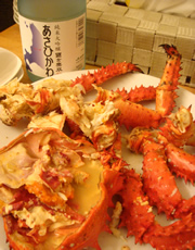 | 母と立ち寄ったスーパーで、殻付きの「蝦蛄(シャコ)」を発見しました。7匹で580円…かなり安いですっ☆大好物の「北海タコ」も足1本480円これもイイ☆さらに旬ではないけれど、内子と外子を持った「花咲ガニ」が2680円…“子持ち”は珍しい!奮発しちゃお! 明日、北海道を離れるから、今夜はジンギスカンかなぁ…って思ってたけど、この3品をみつけちゃったら、やっぱり家飲み☆食材持って姉の家におじゃましました。 |