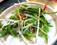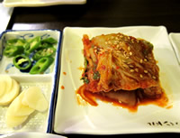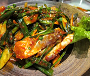 青唐辛子の種を取らずに刻んだ激辛のサラダ。 激辛好きの私もヒーヒー! 辛いモノ大丈夫な友人も、顔を真っ赤にヒーヒー! となりの席では、チンピラ風の韓国人が、連れてきた女に怒鳴り散らし、途中からきた舎弟な感じのにーちゃんに、テーブルの下で蹴りを入れていた…。 日本人のいない店内で、チラチラと睨まれる私たち…GWは、都内でも海外旅行気分が味わえる。 |