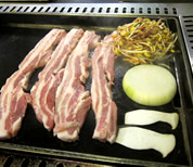 席が取れたのは、北朝鮮・中国・ロシアとが接する地域「延辺」の料理店で、2年前に友人の誕生会をやったお店「金達来」。 外の日本人GW混雑をよそに、この店内は、いつもの大久保らしく、韓国語が飛び交っていた。 濃い目の「ウーロンハイ」を片手に、 唐辛子・クミンなどの香辛料をたっぷりまぶした羊肉の串焼きを齧る。 各テーブルにある食べ放題風な「ニンニク」を串に刺して、自分の好きなだけ焼いて食べる。 |