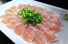 …あら不思議! ブルーな酔いがサラっと醒めて、 いつもの“笑い酔い”。 オーダーしてた「鶏さし」のキレイな色ツヤに、 またまたテンション↑↑↑ カラダの調子で、飲み合わせの良いお酒って、 あるんだよなぁ… |