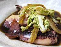 近江牛のイイ“すじ”が手に入った…ウマイ! 右・「ヤリイカと春キャベツ」 キャベツにイカの旨みが染みてイイわ〜♪ |