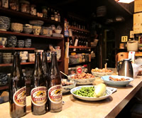 | おばちゃんに連れてきてもらったお店は、 売れる前の「はるな愛」ちゃんが、 1人でやっていたバーの隣りの小料理屋さん。 カウンターには、女将さん手造りの大皿料理。 隅に置かれた、10円式のピンクの公衆電話。 “形のいい和食器”が無造作に置かれている。 天楽のおばちゃんとあらためてビールで乾杯! なんだか切なく、いとおしい…DEEP三茶の夜。 |