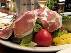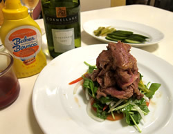 そして、Iさんのオススメの1つ 「砂肝のサラダ」(写真右上) え?どこに砂肝?って、思うでしょ… こんもり盛られた葉モノ野菜の下に、臭みを抜いて美味しく煮込まれた砂肝たち、そしてトマトも新鮮で甘みのバランスがよくて、美味しい♪ヘビーな量なのにペロリ(笑) さて続いて、2本目のワイン。 「DOMAINE LEON BARRAL Jadis FAUGERSE 2006」 これまたスゴイワインをチョイスされたぁ〜 さっきまでピノ・ノワールの話をしてたんで、てっきりそっちかと思ってたら、、、あれ?ガツン系! スパイスの香り、カカオ…ミネラルとタンニン、フレッシュな酸…うわー強いっ。まさに“オトコワイン”。 |