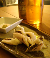 | 漁に出られた日曜日に開催される「東京湾 柴漁港名産直売所」は、目の前の船着場から次々に揚がってくる魚介、江戸前のブランド鮨ネタ「小柴のシャコ・穴子」が、市価よりも格安の“港価格”で買える市場。 今回は、シャコはありませんでしたが、穴子1匹と甲イカ2匹、エボダイ2匹、クマエビ8匹を購入(全部で約2000円)。穴子は、その場で捌いてくれます☆ ---- 帰宅して、まずは穴子をさっと炙って&ビール♪ ヒーハー♪ウマイ♪♪♪ 甲イカは、1匹目の墨袋を破いてシンクが真っ黒(笑) 半分を刺身に、そして残りのネタとアラを使って、「ブイヤベース」を作りました。 火が通った穴子のふんわりほどける食感は、炙り刺身とは違う旨みたっぷり☆鮮度抜群の食材たちで幸せの夕食☆ また近いうちに漁港へ行きた〜い! |