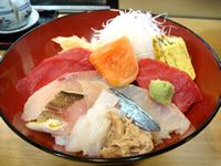 今日は、“江戸前”の美味しい魚介を求めて、横浜市金沢区の「柴漁港」までドライブ。 まずは、漁港の目の前にある、寿司店「かねへい」さんで、ブランチ。 「ランチ丼」のネタは、赤身・中トロ・鯛・スズキ・サーモン・ヤリイカ・秋刀魚・カワハギ肝合え・あぶり穴子。地物のネタはどれもプリプリ♪特に生の穴子を炙ったネタは、最高でした! さらに「茶碗蒸し」・「椀物」がついて1300円☆☆☆ |