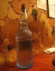 | 今夜は、フラメンコ仲間が集まって、 友人の快気祝いと、先日のライブの打ち上げ。 スタジオ近くの代沢十字路「五臓六腑 七八」で、 2.5h飲み放題つきの水炊きコース¥3980/@を、 予約していたのだけど、行ってみたら… 「コースの予約聞いてません」と、バッサリ。。。 幹事は、私。 予約の電話の内容まで詳細を話すと、渋々やってくれることになった。 予約がちゃんと取れてなかったコトのお詫びとか一切ナシなのが、若干ムカついたが、仕方ない。 それでも始まってしまえば、久々に集まったメンバーで、楽しい飲み会が進んでいく。 ほとんどが“呑み女”なので、「瓶ビール」×6本…後、さらに、飲み放題コースの「前割り焼酎」(焼酎を前もって水で割って保存…飲み口がまろやかになる)のボトル(写真→)×5本目。 この夜、この後、私は記憶をなくした…(哀) |