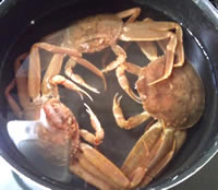 近隣の飲食店ご用達 築地直送の魚介を扱う魚屋さんで、1匹280円仕入れた「せいこ蟹」。 水に入れるとブクブクしてたんで、生きてた。。。 ←このままコンロの火にかけるのです。 残酷な気持ちです…でも美味しくいただきます。 蟹さんありがとう。 この蟹たち、ひっくり返すと、ものすごい量の卵を抱えています。さらに開いてみると、朱色の内子もしっかり入っていて、めっちゃウマイ。 蟹さん本当にありがとう。 |