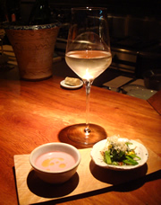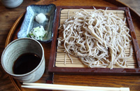 | 席に着くと、冷たい蕎麦茶と、酒粕でつけたきゅうりが出てきた。どちらもそれぞれの風味がしっかり生かされた美味しいおもてなし。 打ちたて、切り立てという蕎麦は、すすると蕎麦粉のイイ香りが鼻を抜け、何もつけないで全部ペロリ食べてしまいたいほど。 欲を言えば、値段の割りに量が少ない… あぁ大盛りにしとけばよかった… もっと食べたいなぁ(笑) |
