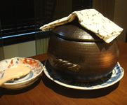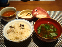 この4品で、すでに満腹感。幸福感。 和食って、すばらしい!!!と、改めて感動。 でも、さらに …最後の〆にまたノックダウン。 土鍋の「炊きたて炊き込みご飯(しめじと大山鶏)」と、「海苔の赤出汁」、「大根と梅の漬物」。 炊き込みご飯が大好物の相方は、大喜び♪2人でペロリと2合程のご飯完食。。。 そして最後に、ほうじ茶を啜りながら、デザートの「和三盆のプリン」をいただく… |