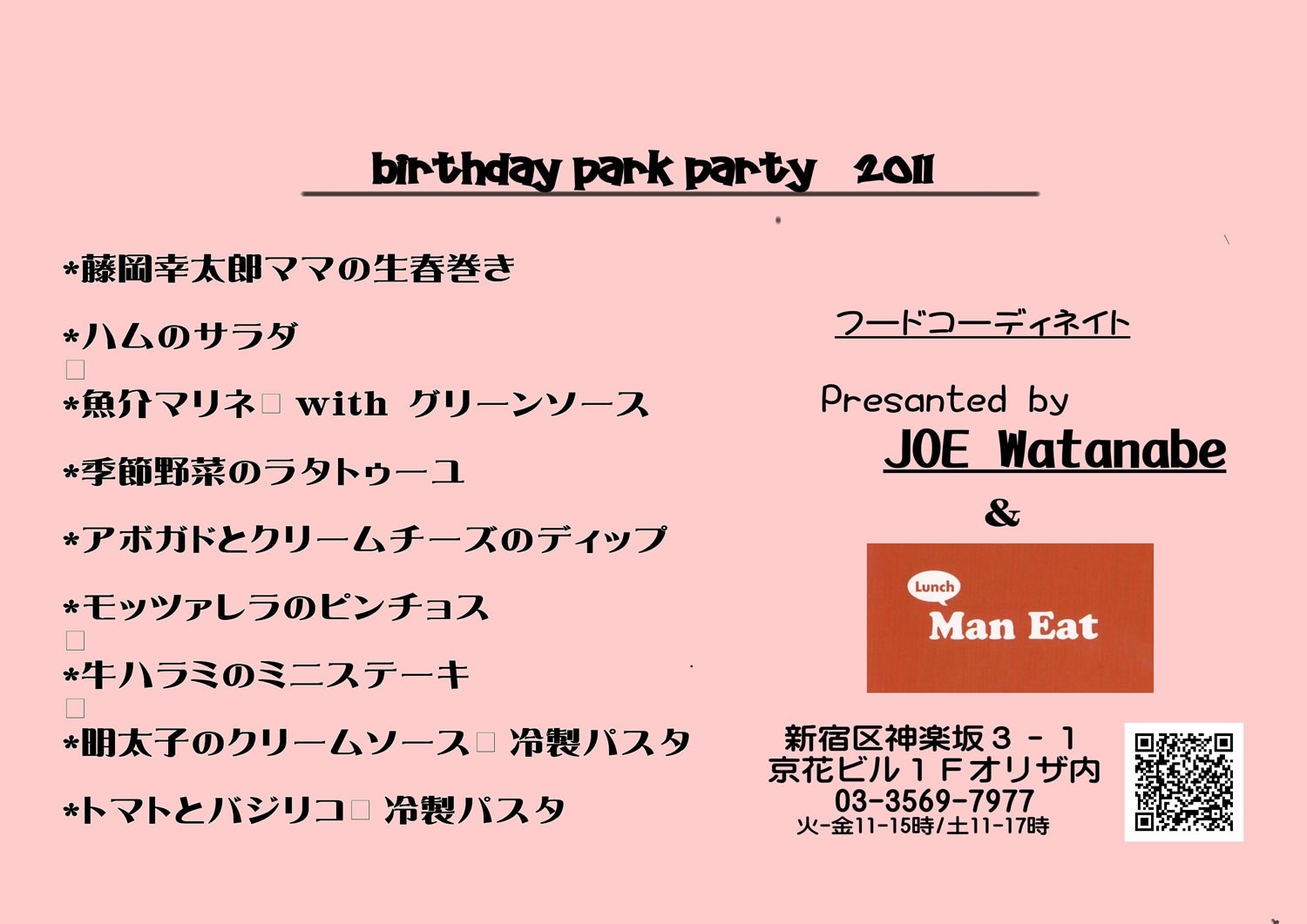 | フード全般をコーディネイトしてくれたジョーさんがお世話になっているという、神楽坂の「Man