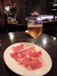 しかもワインは、セラーに選びにいけるし、日によってはフラメンコのライブが行われている。 今夜もライブがあるので、店内はバイレのお友達や、仲間で、ほぼ満席。 ライブが行われるのは、ステージではないけど、目線の高さで踊りが見られるのは、フラメンコらしくていいなぁ〜さらにショーチャージがないのも嬉しい♪ …ただ、料理のポーションが少ない(写真の生ハムは\840でした^^;)のと、フラメンコライブのクオリティはイマイチ(この日だけかな^^;)で、残念。 でもまたぜひ行きたいと思います♪ |