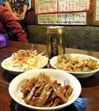 うーっ寒。。。 今夜は、お友達のカメラマンさんの事務所の忘年会。毎年たくさんの人で混雑してる忘年会なので、先に何かお腹に入れて行こう!と、一人、渋谷「富士屋本店」に寄りました。 このお店は、完全立ち飲み。 カウンターについたら、1杯目の酒を選び、小銭と千円を取り出して、自分の前におき、肴を選ぶ。 そしてオーダーしたものが到着したら、必要な額を店員さんが持っていく。 今夜は寒いから、最初から「お燗」。肴は「マグロぶつ」。ここの「貝ひも刺し」がお気に入りだったけど、今はなくなってしまった。地震で貝が安く入らなくなってしまったそうだ。 …そっか…。“そういえば富士屋久々だな”と思ってたら、3月から来てなかったんだ… |