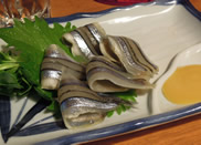 「きびなご刺身」(400円)、「ポテサラ」(300円)、これで1000円分のチケット使いキリました。 うーん、もう1杯欲しいなぁ!もう1000円分チケット買っちゃぉ! |