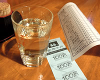 高田馬場「磊磊」(らいらい)。 コチラは酒屋さん直営の立ち飲み。 お会計は全てチケット制で、まず1000円のチケットを買い、お酒(日本酒・焼酎・日本ワインなど…)や、肴と交換します。 チケットの残りは、期限なくいつまでも使えるし、チケットの一番上を3枚集めると、1杯無料との事…なかなか飲み心をくすぐられるシステムです☆ 「会津娘の純米ひやおろし」(300円)を、まずオーダー。 |