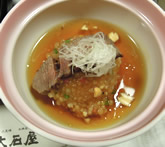 | お通しに、 京風の雑煮仕立ての麩料理。 エビとベーコンの焼き物。 自家製の玉葱タレがかかったローストビーフ。 どれも“オトナちょうどいい”感じ…いいなぁ〜。 いつもキレイ結われた髪と、ステキな和服で迎えてくださる女将。 私もいつか、こういうお店に、普段からサクっと通えるステキな姉さんになりたいと思います。 |