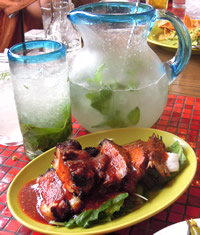 公私共にお世話になっている大阪のお姉さんが、お仕事で上京。 4月ぶりに一緒に飲みました〜♪ 1軒目は、代官山「Hacienda del cielo 〜アシエンダ デル シエロ〜」。話題のメキシカン。ホントはテラス席がよかったのだけど、予約なかなか取れないデス。。。 だけど窓際の席GETで、日が暮れる前の夕方からかんぱーいっ! 「モヒート」は、ピッチャーでガブガブ。 「メキシカン・スペアリブ」は、ハラペーニョのせてガブガブ。 陽気な気分になってきたで〜♪ |