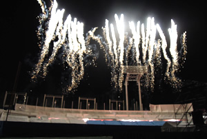 | 本当に目の前で上がる花火。 視界一杯が花火になる。 打ち上げ場所も数箇所見えた。 花火職人さんたちの動きがこれまたステキで…。 夏、真っ盛りです! |