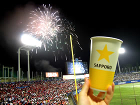 夏休み真っ只中の神宮球場は、子供たちだけじゃなく、オトナに嬉しいイベントが!! “広島カープ×東京ヤクルトスワローズ” この日の試合は乱打戦!! テンション上がる↑↑ そして…イニングの合間に打ちあがる花火さらに盛り上がるっ!最高♪ ビールの売り子さんたちも大忙し〜 「ビールの泡少な目で!おかわり!」 |