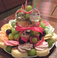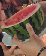 恒例の相方の誕生会。 今年は、誕生日当日にやりましたー! 三宿にあった「Cafe Cheiri(シェリール)」から始まった、この恒例のBirthday Party。 今年は、その「Cafe Cherir」の店長ジョーさんのお店「Cherir cabre(シェリール カブレ)」でやることができました☆☆ 急なお願いなのに、楽しいパーティーになるよう、ご協力くださった「Cherir cabre」のジョーさん、シェフ、スタッフの皆様、ありがとうございました! ジョーさん企画のウェルカムドリンクは「スイカテキーラ」。 スイカを切り抜いた中に、冷やしたテキーラを注ぎ、スイカの端からグビっ!! みなさん、与えられるまま、警戒心なく、スイカに口をつけてくださいました♪テキーラを流し込まれたお客様の、ビックリ&嬉しそうな表情が☆☆☆ |