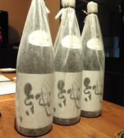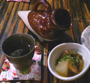 | 「前割り焼酎」をお燗していただきました。 “前割り”とは、焼酎を一度、水で割ってから、1日以上寝かせて飲むもの。 焼酎特有の尖ったアルコール臭さが和らいで、飲みやすくなります。そのまま飲んでもよし、お燗にしてもよし。食中酒としても最適♪ 肴は、宮崎沖で揚がった「カツオのタタキ」と、「宮崎地鶏のタタキ」。 この地鶏は、しっかりした肉質。ちょっと固めだけど、噛むほどに味が染み出す旨さ☆☆☆ やっぱりここ好きだなぁ♪ |