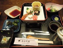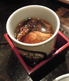 料理の雰囲気は、ちょっと古い感じがしたけれど、手をかけ過ぎず、ひとつひとつの素材を生かした味わいで、かなり好きです。 「伊勢エビ・サザエの造り」は、臭み苦味全くなく、プリプリの食感がたまらんです。 「アワビの残酷焼き」は、手のひらくらいの大きなサイズにビックリ☆目の前で悶えるように焼かれていく姿が…(哀)…焼きあがると、しっとり柔らかく、肝は旨みたっぷり…アワビ万歳!! |