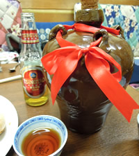 「青島(チンタオ)ビール プレミアム」から始まり、 美味しい肴のオンパレードに、 「瓶出し紹興加飯酒7年(無濾過)」1升が、ペロリと空いてしまいました。 |