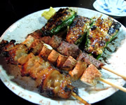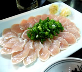 手作りのお通しは日替わりで、今夜は「マカロニサラダ」…相方の大好物。私の好みは「切干大根の煮物」だった。 「ジャーマンポテト」の香ばしさで、キンキンに冷えたビールをグビグビ。 美しく盛られた「鳥さし」、生肉loverの私は見るだけでテンションが上がる。付けタレのポン酢ニンニク、生姜醤油、どっちも美味しくて交互に食べるとお酒がどんどん進む。 「ひな皮ニンニク焼き」など、焼物を頼むと、大将が「椎茸石づき」や、「ハツもと」など、裏メニューをサービスしてくれたり…。 |