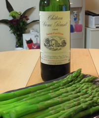 札幌の母から、「朝もぎアスパラ」が届きました。 空輸の速達のはずなのに、発送されて、私が受け取ったのは、5日後。。。 どうやら、我が家を見つけられず、宅配便業者(ペリカンさん)の冷蔵庫に保管されていたらしい。 こちらの住所が確認できなかった、と言うが、もし本当にわからないなら、なぜ、発送元の母の携帯電話(送り状に書いてある)に連絡してくれないのか・・・ せっかくの「朝もぎ」が、台無しです(泣) でも、5日たっても、東京で買うものより、柔らかい♪ 塩のみ、蟹クリームソース、マヨネーズ・・・いろんな味で、試したけど、やっぱり塩のみが美味しかった お供ワインは…「Chateau Vieux Pourret 1999」。 |