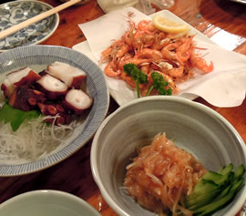 長く闘病しているフラメンコ仲間が、地元へ転院する事になり、みんなで激励に行きました。 帰りに、虎ノ門「升本」で一杯。 「川エビの唐揚」「タコ刺し」「梅水晶(サメの軟骨を梅肉で合えた物」 大好きな肴ばかりで、日本酒が旨い!! 酒好きの病床の友人が、また一緒に杯を酌み交わせる事を願って…。 |