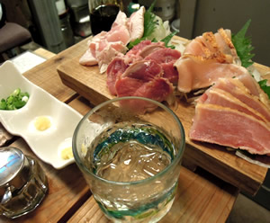 | 広島から帰ってきてからも、バタバタした日々が続いています。。。 お家の最寄駅・三軒茶屋「オオモリヤ」。 鹿児島の知覧どりのお店。 ここの地鶏の刺身4種盛り合わせが、大好物です。 鹿児島の醤油につけたり、手作りの柚子胡椒をこんもりのせて食べたり…。 合わせるお酒は、地鶏の育った同じ地域の焼酎「ちらんほたる」のロック。 うんま〜♪ |