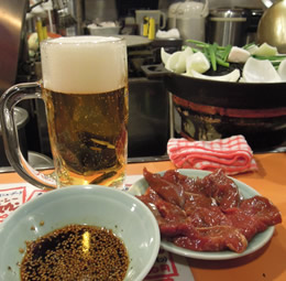 夜は、「札幌ジンギスカン」さんで飲んじゃうぞ〜。 昔と変わらぬ階段を登り、羊の肉の匂いを染み付いた円椅子に座った。 たしか、おかわり1皿毎に、羊の部位が変わるのだっけ・・・よっしゃ、食べるぞ〜!! …って、 うーん、こんなに、タレ甘かったかなぁ… 辛党の私は、甘いとたくさん食べられないのですよ… 結局3皿食べてギブアップ(しかも2皿と3皿目は同じだった)。 うーんと思うのは、 …私の舌が、老いたのね(哀) |