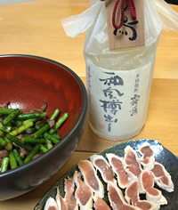 | 今夜はこの中から、ササミを「たたき」で、鶏モツを「ニンニクの芽で炒め」て頂きました! お酒は、宮崎の「霧島 和風樽出し」鳥の札バージョン。 いっただきます!!!……・・・・あれ??? 地鶏と芋焼酎は、いつも鉄板な組み合わせなのに、ガツンと旨みがこないなぁ…。。。 お酒を切り替えて、同じ長野の日本酒「井筒長 本醸造」(写真撮り忘れ…汗)にしてみたら… …おおぅ!!イー感じ☆ 見た目より繊細な軍鶏の旨みが、軽快な飲み口の日本酒に合う〜〜♪ |