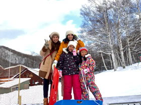 札幌市内から一番近いゲレンデ「さっぽろばんけいスキー場」へ。 小学生の頃から馴染み深いゲレンデですが、全然変わってなくて…懐かしいなぁ☆ 雪山での遊びは、もちろん始めてのタイ人ファミリー。 ソリやミニスキーを教えながら、自分も久々に雪あそびを満喫しました☆ |