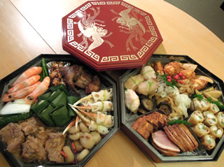 相方と、やっとホッとできたのは、もう紅白が始まった後でした… 今年は、美食雑誌Dancyuのネットショッピングで、 「赤坂 広東料理 櫻花亭」の中華おせちを購入。 それを年末のご馳走にしちゃいました! 冷蔵で先ほど届いたおせちは、なんとも豪華〜☆☆☆ |