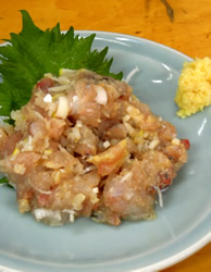 | まずは、「いるか煮」。 …うーん、。、実は食べたくなかったのだけど…。「有無もいわさず」提供されてしまった(涙)ちょっと、ね、好みではないけど…いるかの命をしっかりいただきました。。。 「金目鯛の刺身」。 『いいサイズだったから、美味しいよ』(大将) 確かに、この身の美しさ。脂ノリノリ♪ 「サンマ塩辛・香々(こうこう)」 これは、絶品だったなぁ…。秋に揚ったサンマを血抜きして、生のまま大樽に、漬け込んで行くそうです。 この時期は、樽の最後あたりなので、熟成が進み旨みMAX!! これは、銚子よりも茨城寄りの名物との事。 来年もまた食べに来よう!と心から思いました☆☆ |
