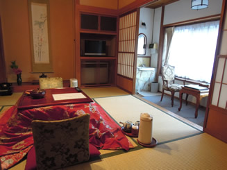 | チェックインの時、若干トラブルがあったものの、 最終的には、 こちらの意向をちゃんと汲み取って下さって…嬉しかったなぁ☆ そして、案内されたお部屋は、これまた懐かしい雰囲気♪ 昔ながらの炬燵で、足をヒーターにぶつけた(笑) このあと、早速温泉へ。 自然に囲まれた露天風呂もよかったけど、 ロビー同様、大正・昭和…懐かしい佇まいの内風呂もよかった〜☆ |