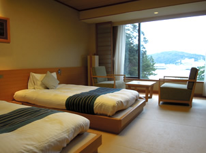 ロビーのソファに案内されると、チーズケーキ&お茶のサービス♪ 今宵の部屋は、2年前に改装されたという“和モダンツイン”。 白木の家具で統一された室内、清廉とした印象を受けました。 明日の伊勢参拝へ気分が高まります。 さぁ、早速お風呂へ! 大浴場には、パールオーロラ風呂という“真珠のエキスを含んだお湯”が用意されていて、入浴後、肌しっとり&パールのキラキラ成分が付着。 その肌についたキラキラパールは、多少洗い流してもそのままなので、 自分の肌を見るたび、なんだかウキウキしちゃいます☆ |