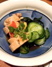 「銚子の思い出」 先週、お仕事で行っていた千葉県銚子市。 その時、買ってきた地物の野菜と、地酒「銚子の誉」、 そして、「大衆酒場ドリーム」で出会った 常連のお兄さんから、お土産にと、いただいた 地元の小倉醤油「五郎左衛門」を使って、アンコウ鍋。 同じ土地で作られた、食材は相性抜群で、 全てが一体となって、美味しいハーモニーを奏でます。 旅をして、海外でも国内でも、 その土地ならではの調味料を、 自分用のお土産に買ってきて、 旅の思い出を楽しむのが本当に楽しい。 また銚子へ行きたくなったなぁ… |