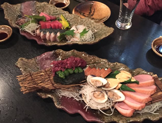今宵は、事務所仲間のTちゃんのお誘いで、お芝居つながりの方々の飲み会に参加してきました。 新宿「木村屋本店」。 3時間の飲み放題と、刺し盛・前菜盛・サラダ・モツ鍋・国産溶岩焼き…など14品がついて、土曜日料金で、1人4500円。 「刺身」、鮮度○。 「前菜盛」、和洋中バラエティに跳んだ内容。 「サラダ」、野菜シャキシャキで、たっぷりチーズのシーザー仕立て。 「国産牛の溶岩焼き」、お肉のボリューム◎ 「揚げ物」、提供されるタイミングで揚げたて。サクっとしてる。 「モツ鍋」、こってりした塩味スープ、ニンニクたっぷりなので食欲UP。 もう、満腹〜!と、なったここで、 「宮崎牛のたたき」、さっぱりポン酢と新たまねぎ、そしてお肉の味も○ 実は、あまり期待してなかったのですが…お食事の量・質ともに良い感じ♪ |