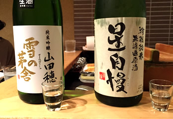 「魚卵部」 作家の角田光代さん部長の「魚卵部」。 深夜の渋谷で発足したこの部活動、今回で4回目になります。 今宵は、“酒サムライ・あおい有紀”さんが幹事になってくださり、 「築地玉寿司 本店」にて、開催されました。 玉寿司の社長様より、差し入れ頂いた日本酒と共に、 美しい肴が並びます。 刺し盛には、「数の子」「子持ち昆布」が添えられ、「魚卵」を愛する我々のテンションは最初から最高潮! |
