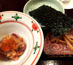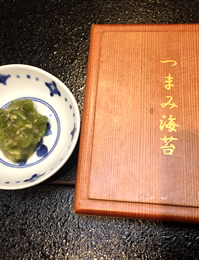 魚卵ではないけど、 「つまみ海苔」という絵と響き に私はノックダウン。 お刺身だけでなく、 「ホヤ」「塩辛」… などなど、 酒の進む肴たちを、 この海苔でクルリと巻いて、 口に入れて… あぁ至福〜。。。。 手巻き寿司発祥のこちらならでは! こだわりの海苔の味わいと、ネタとのコラボは最高でした! |