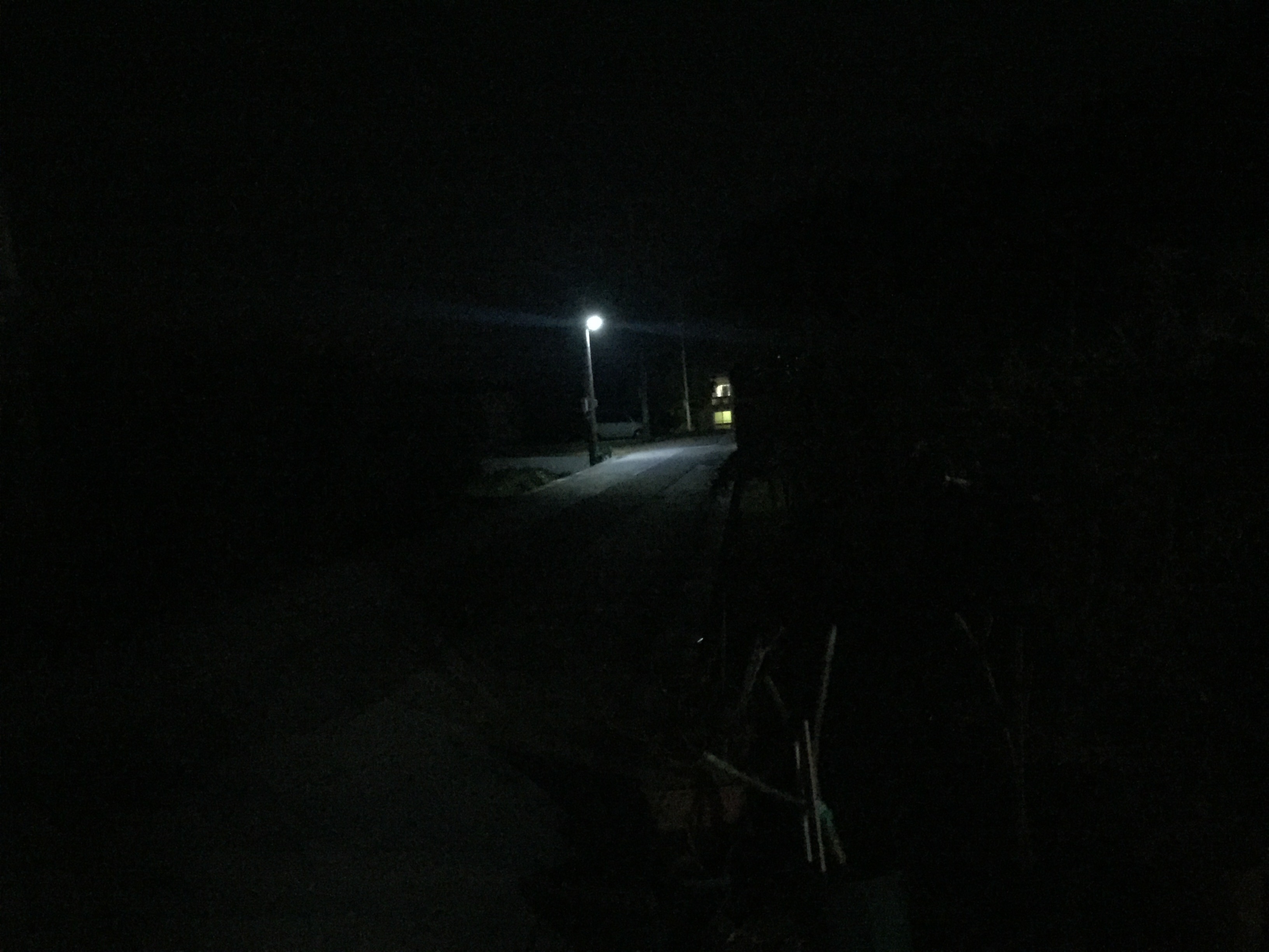 真っ暗な道。宿まで徒歩3分。