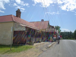 ハンターバレーツアーに参加する日本人は私とゆいちゃんだけ…バスの運転手兼ガイドのおじちゃんが、シドニーや高速道路の解説をはじめたが、耳に入ってくる英語は子守唄のよう…おやすみなさーい。 そして爆睡のまま、バスに揺られる事、2時間。 まずカフェタイム…小さな町に到着。名前は…えっと聞き取れませんでした(汗) 建物が全部で20軒にも満たないような小さな町にドライブインが2軒。まさに、大型観光バスのための街だ。(写真右上) そして再び小1時間。 1軒目のワイナリー到着。 |