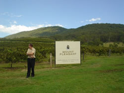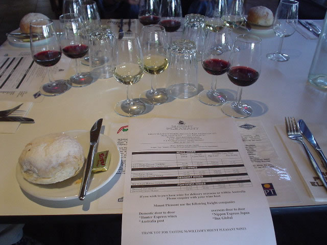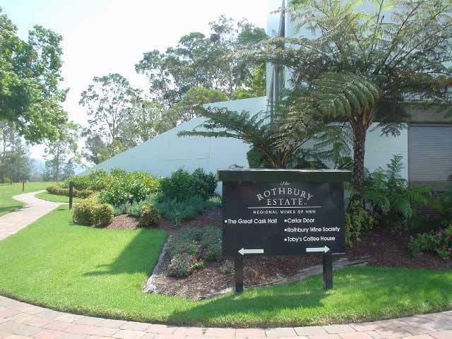 | お腹が満たされ、ほろ酔いで2軒目のワイナリーへ。 「ROTHBURY ESTATE」 オーストラリアワインの先駆者のワイナリー。 庭はキレイに刈り揃えられ、手入れが行き届いている。建物の内部にはVIP用の試飲室などが設けてあり、VIP専用デスクにはマネージャーが田舎を感じさせないスーツ姿でビシっと電話を受けている…と一軒目のアットホームなワイナリーとは全く違うイメージ。 |