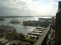 | さてホテルへ無事到着。…と嬉しい事が待っていた! 昨日のリクエストが叶って、部屋が25階にUPしていたのだった☆ 窓からはオペラハウスとフェリーターミナルが一望…。 うん。やっぱり言ってみるもんですね。 “ダメもと”…もしかしたら、一生のうちにもう二度とここには来ないかも知れないのだから、お願いくらいしてみるもんです。 |