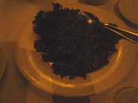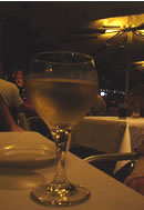 …“シーフードの前菜”“エビとパイナップルの炒め物”“海鮮焼きそば”…ありゃなんだか、日本にいる時と変らないものばかり…。 チャイニーズを選択したのがそもそも間違いだった…でも雰囲気に釣られちゃったんだよね〜。まぁいっかー…ん?“Emuのハーブ炒め”? “エミュー”ってあのダチョウみたいな生き物だよね…よし!これ食べよう! 暗すぎてほとんど見えないけど、右上の写真がその“エミューのハーブ炒め”。ミントの葉っぱがたくさん入って、臭みは全く感じないけど、うーんまぁまぁかなぁ。 今回もシドニーの州である、NSW(ニューサウスウェールズ)州で出来たワインをオーダー。 |