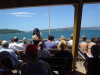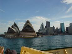 “マンリービーチ”を存分に楽しんで、再び“サーキュラーキー”へ。 途中に見えるのは、シドニーのシンボル“オペラハウス”。 観光船に乗らなくても、市民の足フェリーで簡単に素晴らしい景色を堪能できる…すごく得した気分になる。 この後、ホテルに戻りチャックイン。 ここで残念な事が起こった。ホテルの部屋が下層階を割り当てられたのだ。「もっと上の階にしてくれ」とお願いしても、「今日はもう部屋がない」と言う。仕方ないので、部屋のリクエストを入れて明日に賭けるしかない! |