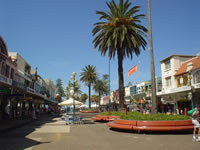 “マンリー”のフェリー乗り場から徒歩5分ほどで、太平洋側に行ける。 その道の両脇にはお土産や洋服屋、カフェが軒を連ねる。 夏仕様に着替えた私たちだったが、ビーチが近くなると、ビーサンと短めのワンピース…そして水着に着替えたくなってきた☆ 予算をA$30にして物色し始めたけど、サイズが合わない。夏物はSALEになっていて安いけど、品数も少ない。 結局30分ほど歩き回ったが良いものがナイので、諦めてビーチへ突入☆ |