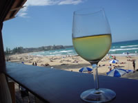 | 青い海…太平洋から“サーフィン初心者の練習にはもってこい”な波が押し寄せる。子供たちは少し大きめの波に果敢に向かってはしゃいでいる。 砂浜には、夏を最後まで楽しみたい若者たちであふれ、昨日のバレンタインデーの続きを楽しむカップルが人目を気にせずDeep Kiss。 水着を持っていたとしても今日の体調じゃ海に入れない私だけど、テンションがどんどん上がってくる。 ビーチ際に立てられた、レストラン・カフェでオーストラリアワインを一杯。 |